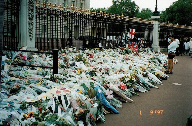 The next morning we wake in horror with the news of the Princes of Wales’ death. Duck and I meet up and head to Buckingham Palace. The place is beginning to resemble a flower store and more and more people drop bunches of flowers off mourning the death of the Princess.