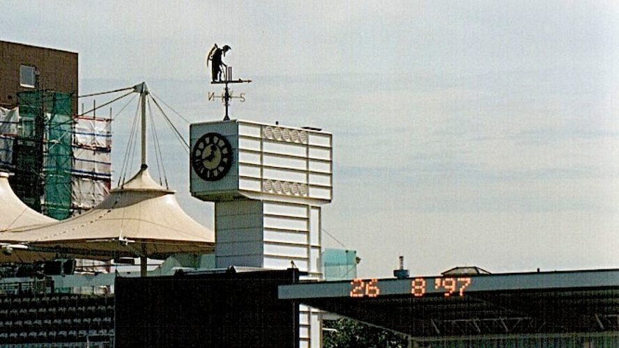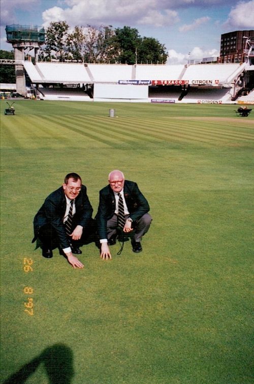 We wander the length of the wicket and take in the enormity of the occasion. I can see in my mind’s eye the crowd cheering, the players at the crease, the umpires in their pristine black and white. Old Father Time is in the distance on top of the Mound Stand, lifting the bails symbolising end of play.