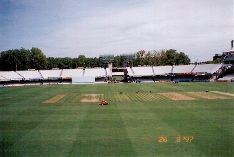 After a long and slow look around we enter the players race and venture out onto the ground. The hairs on the back of my neck stand up as we walk the few steps before we hit the grass surface, carpet like in its preparation. The new space ship shaped media centre is under construction, it will feature in an Ashes series or World Cup in a few years time.