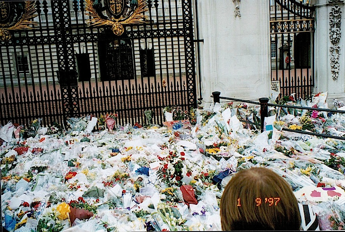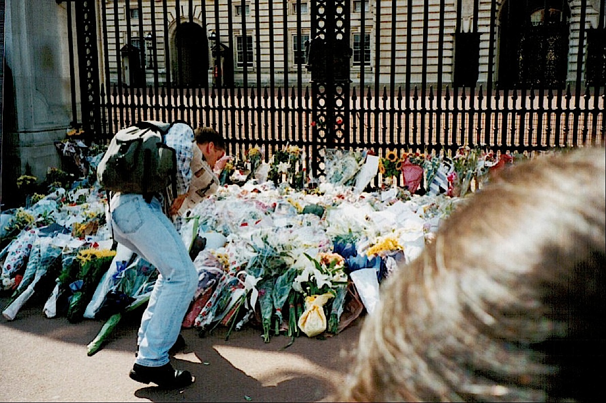The next morning we wake in horror with the news of the Princes of Wales’ death. Duck and I meet up and head to Buckingham Palace. The place is beginning to resemble a flower store and more and more people drop bunches of flowers off mourning the death of the Princess.