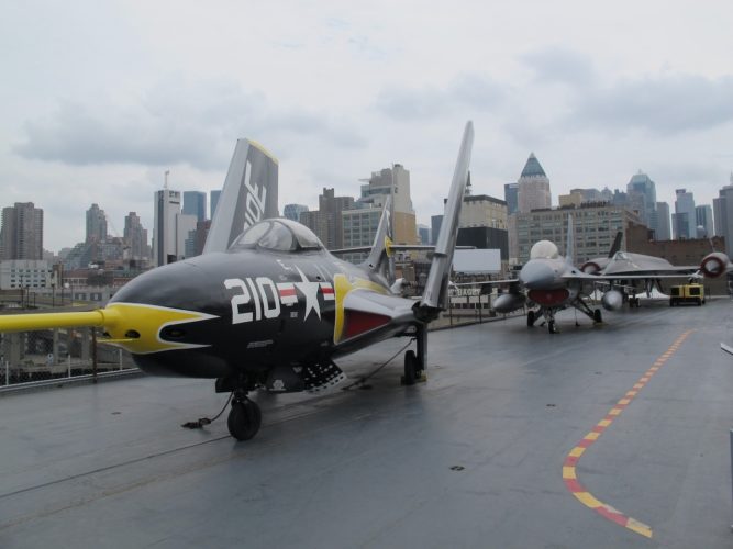 After the park we wander to 42nd St and the Hudson river. We board the massive aircraft carrier, The Intrepid. Permanently docked here, this war shop has been converted to a sea and air museum. The deck is littered with aircraft of all shapes and sizes and the below deck areas carry displays of wartime heroics and battles.