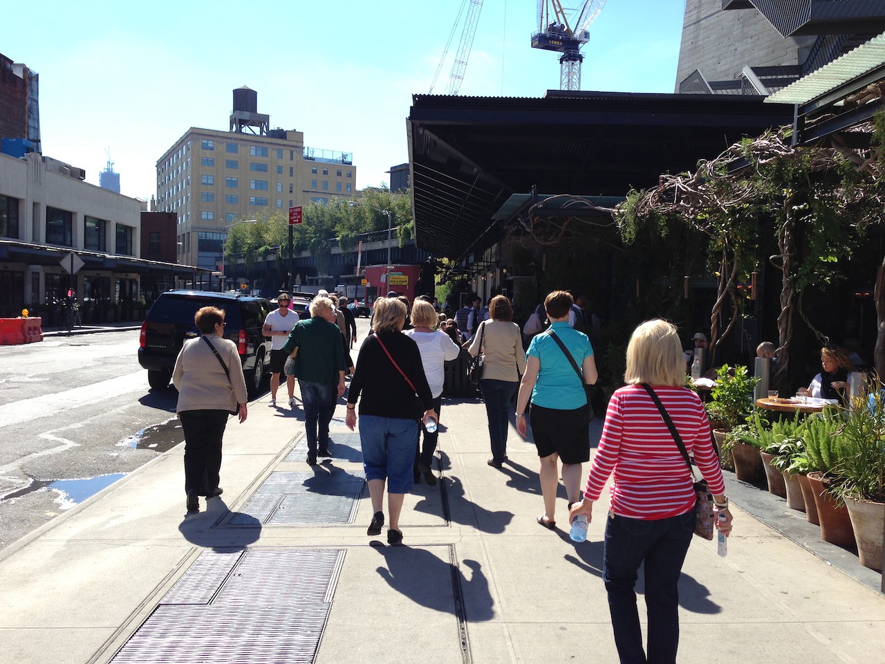 We head out and catch a subway downtown and then walk across to Chelsea from 14th St. We locate the market and enter the busy tight space in search of our tour guide. We are asked to meet near the fountain. We find the fountain and see an odd thing, a few people not moving quickly through the space, that must be our tour group. We see a gentleman with a clipboard: our tour guide. We introduce ourselves, his name is Bob, which he says “Bawb”. His New York accent is obvious, he’s a local and been in New York his whole like and a tour guide for many years. We are in good hands. This is going to be a great tour.