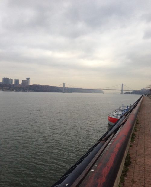 We then ride the subway uptown to 135th Street. We go to Riverside Park. It’s another place I can look down and explore the outlook without effecting my eye. It was quite a hazy day, with low cloud hanging over the view to New Jersey. We wandered through the park. We also wandered the streets, its an area of Manhattan we haven’t previously visited. Our walk takes us on from 135th Street to well into the 140s. we also walk across town a few blocks as we explore. The area is quite different to what we witnessed yesterday as we walked 5thAvenue.