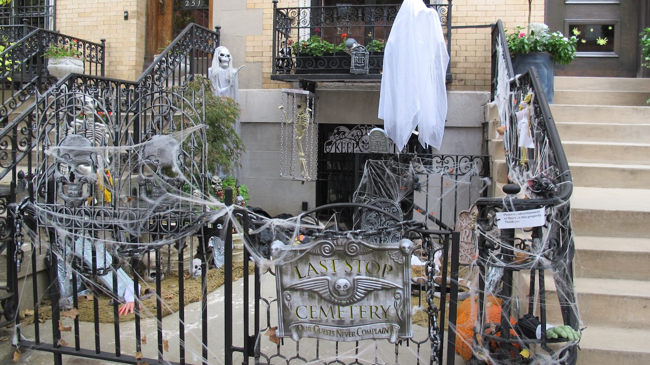 As we walk we also notice a number of Halloween decorations. In Australia we don’t’ celebrate Halloween, but here it seems it is very big. Brownstone after brownstone is decorated with webs, skeletons, spiders and hundreds and hundreds of pumpkins are evident everywhere.