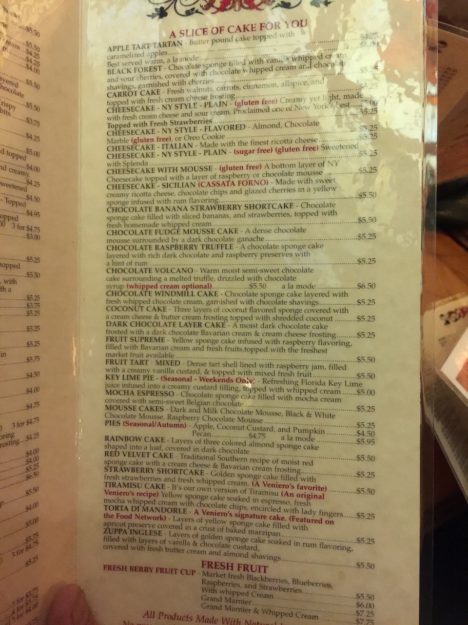 After dinner Bob and Cathy treated us to dessert at Veniero. A local dessert place that has been operating since 1894. Wow. The choice of dessert was overwhelming. Dozens upon dozens of delectable sweets offerings. Cheesecake of all varieties, mousse, cup cakes, flans. You name it, they had it. Yum. Yum. Thanks Bob and Cathy for a great night and great friendship. We can’t wait to visit again and catch up.
