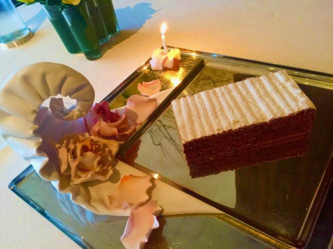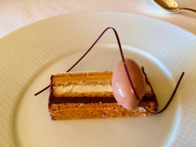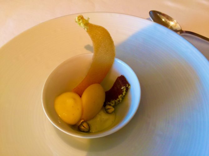 We enjoyed a delicious eight course tasting menu over a three hour period. Although dessert in itself was about five courses and we had two Amuse Bouches before the meal started. In all about thirteen course. The meal was spectacular with exquisite small dishes featuring a range of tastes.
