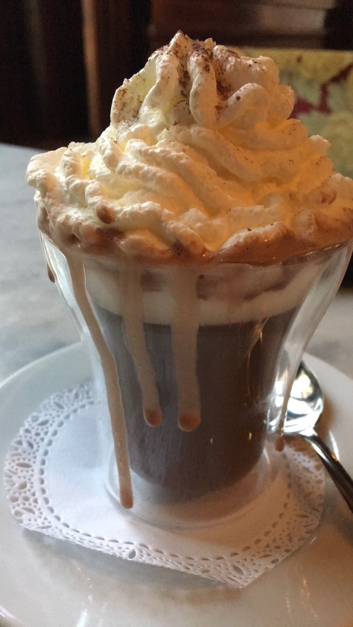 We worked our way around to the Harlem Meer and skirted it as we crossed back to the east. We left the park and walked along 5th Avenue taking in the million dollar apartments. We caught a bus for a few blocks to rest our legs and hopped off at 86th to stop in and have a hot chocolate. We visited Cafe Sabarsky. An Austrian/German cafe. Interestingly we were bag searched and had to walk through a metal detector to get in. Admittedly the cafe is attached to a grand residence on 5th avenue that houses Neue Gallerie. So fair enough, although the museum was closed at the time.