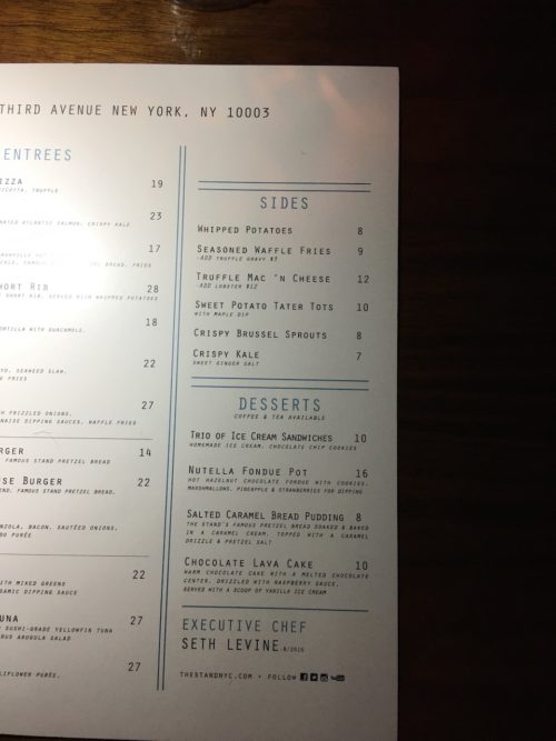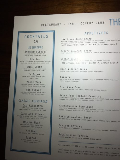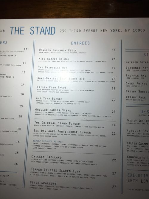 After the movies we headed up to 20th street for dinner at a place called the Stand. An underground comedy place with an open mic, no we didn’t get up on stage. We just had dinner and a cocktail and sat and listened to the Monday night crowd whine about the election result and the weekend sports results.