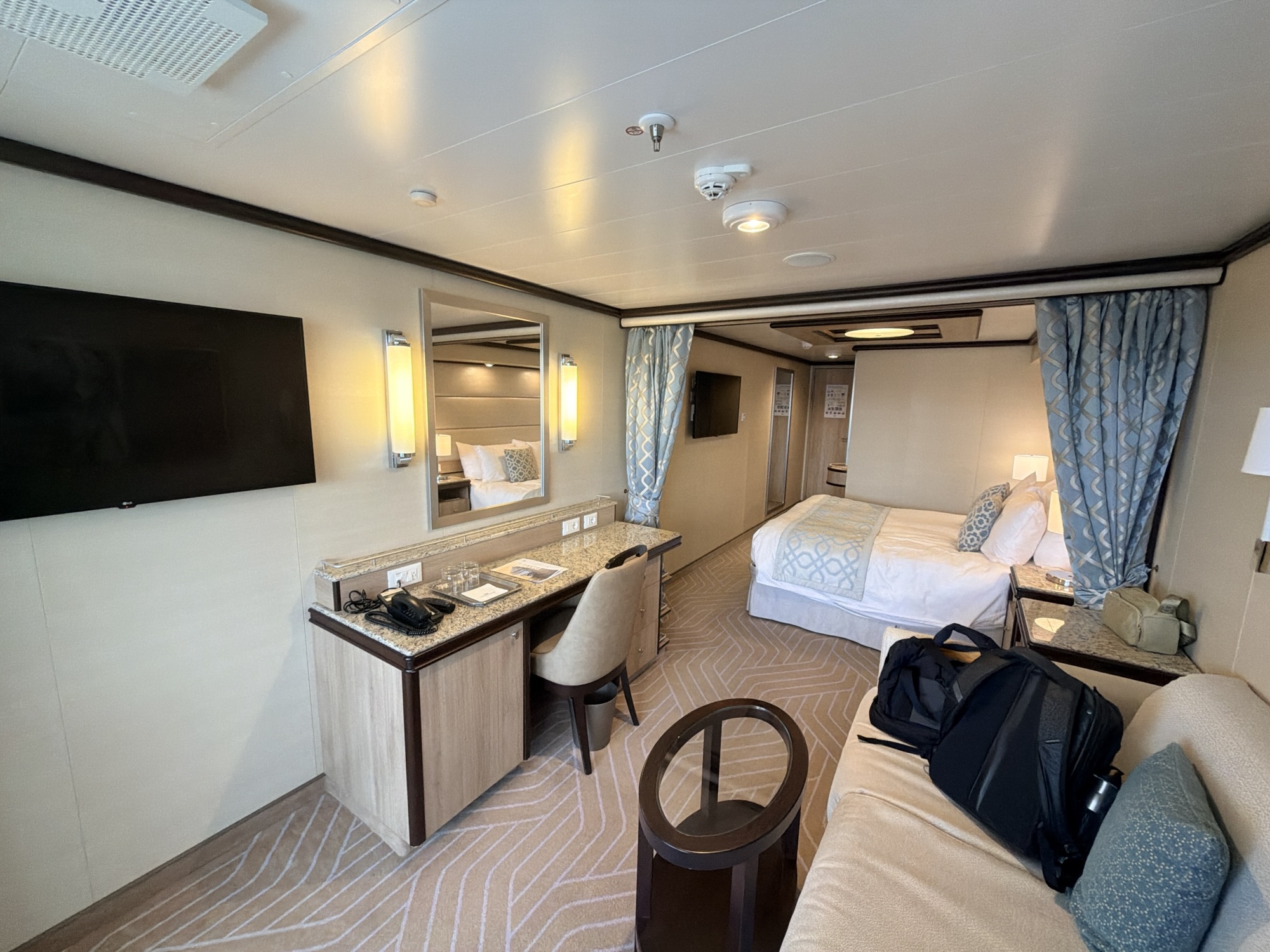No matter how often we cruise, the contrast between the chaos of the International Passenger Terminal and the serenity of our balcony suite always surprises me. Add a 35-degree day and a crowd of thousands all trying to board at once, and you become very thankful it’s a brief hurdle before two weeks of calm.