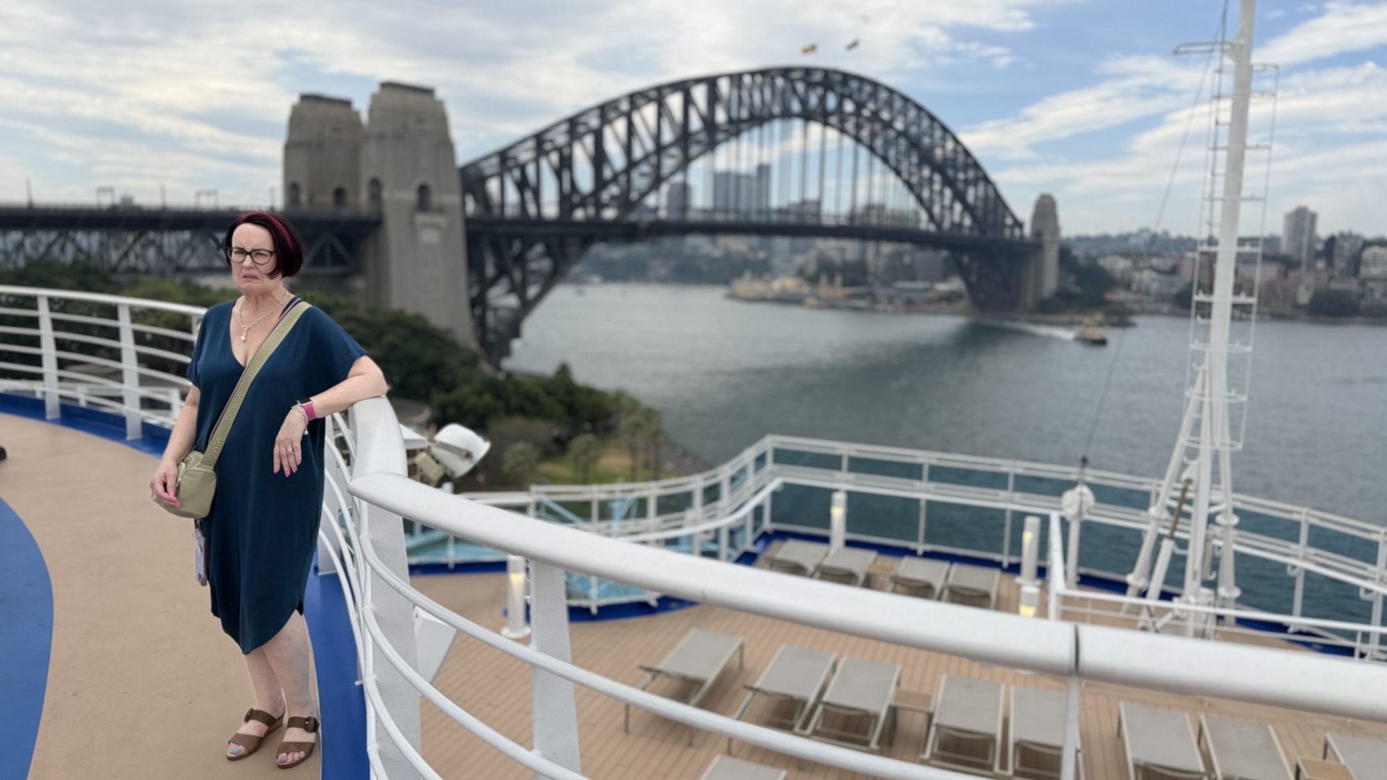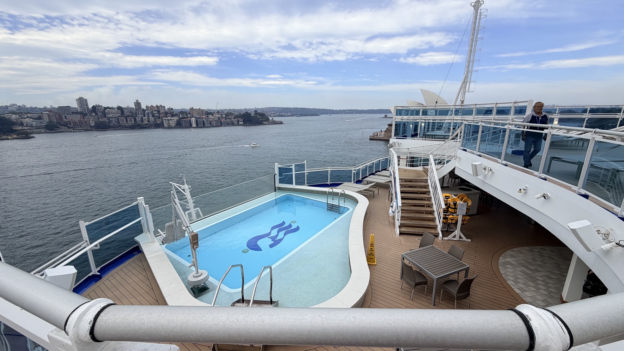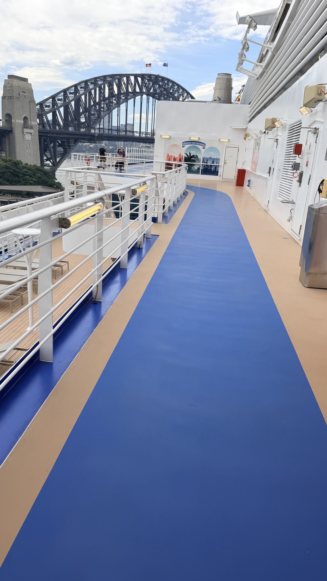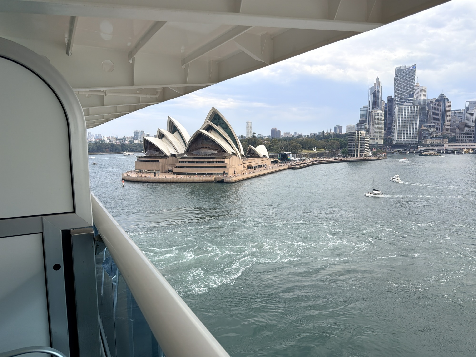 We started right up on the top decks where the ship opens wide and the views stretch forever. The Harbour Bridge loomed behind us. The summer heat shimmered across the water as ferries, yachts and tour boats moved across the harbour. The Opera House glowed in the afternoon sun.