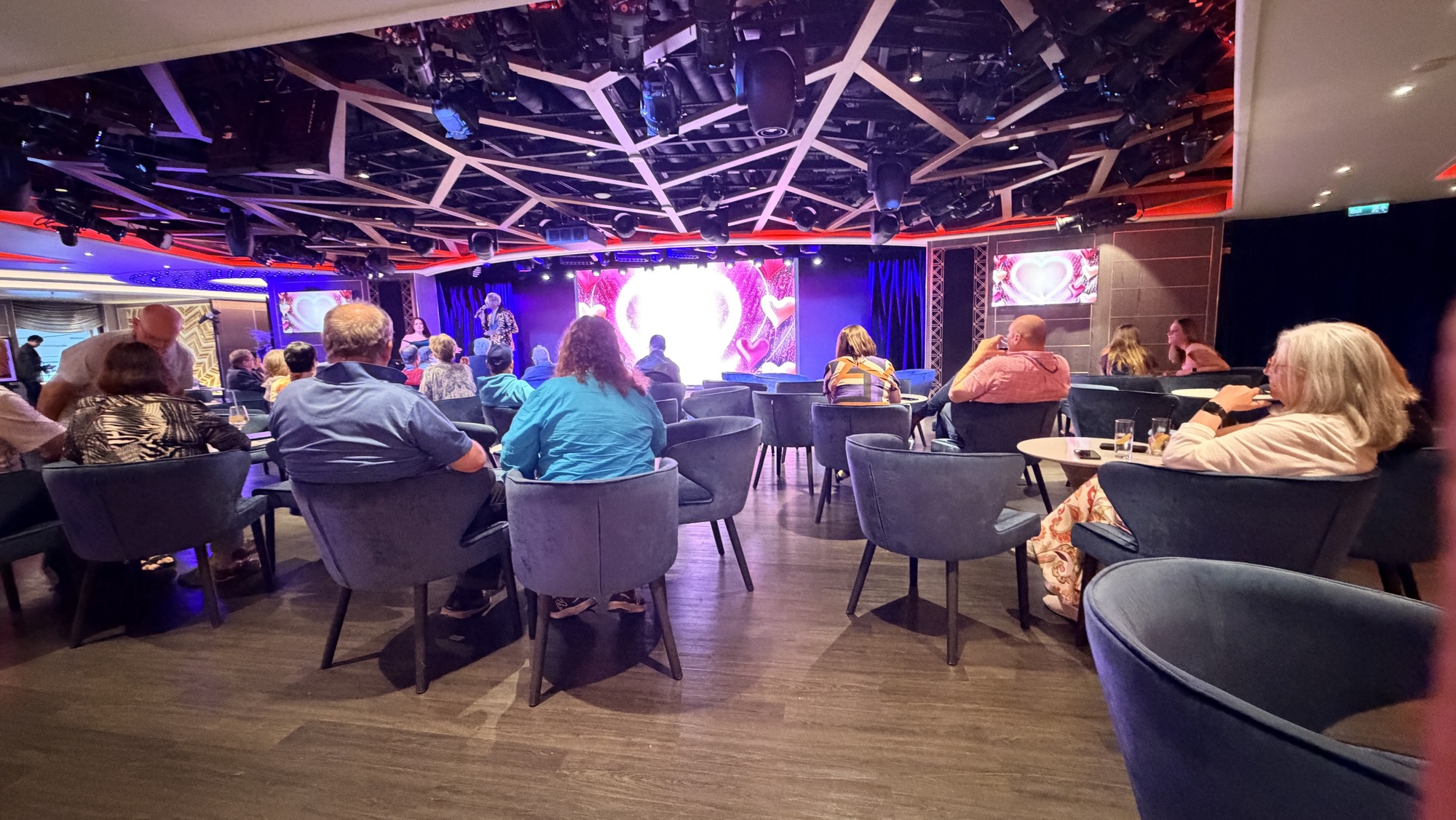 Trivia was front of mind today because this was the final scoring round for progressive trivia. The results will be revealed tomorrow, so there was a bit of nervous energy among the regular teams. Our host for progressive trivia is Donovan. He’s great fun in other events, particularly in the Liars game show and even running line dancing, but progressive trivia brings out his very serious side. He’s South African and runs the session with absolute precision. The rules are strict, clearly stated, and repeated every time. I’ve quietly renamed it “aggressive trivia”.