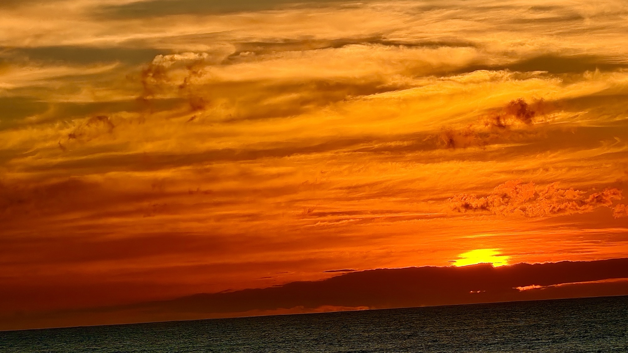 Dinner tonight was at Sabatini’s, which has probably been our favourite of the specialty restaurants. The Italian food is well prepared, flavoursome and comforting. I went for the spaghetti bolognese, which was excellent. Mardi had a burrata salad, and as always the bread arrived warm and fresh. The timing of dinner lined up perfectly with sunset, and I managed to take a few photos of the sky as it shifted into deep burnt orange and soft evening tones. A beautiful end to the day.