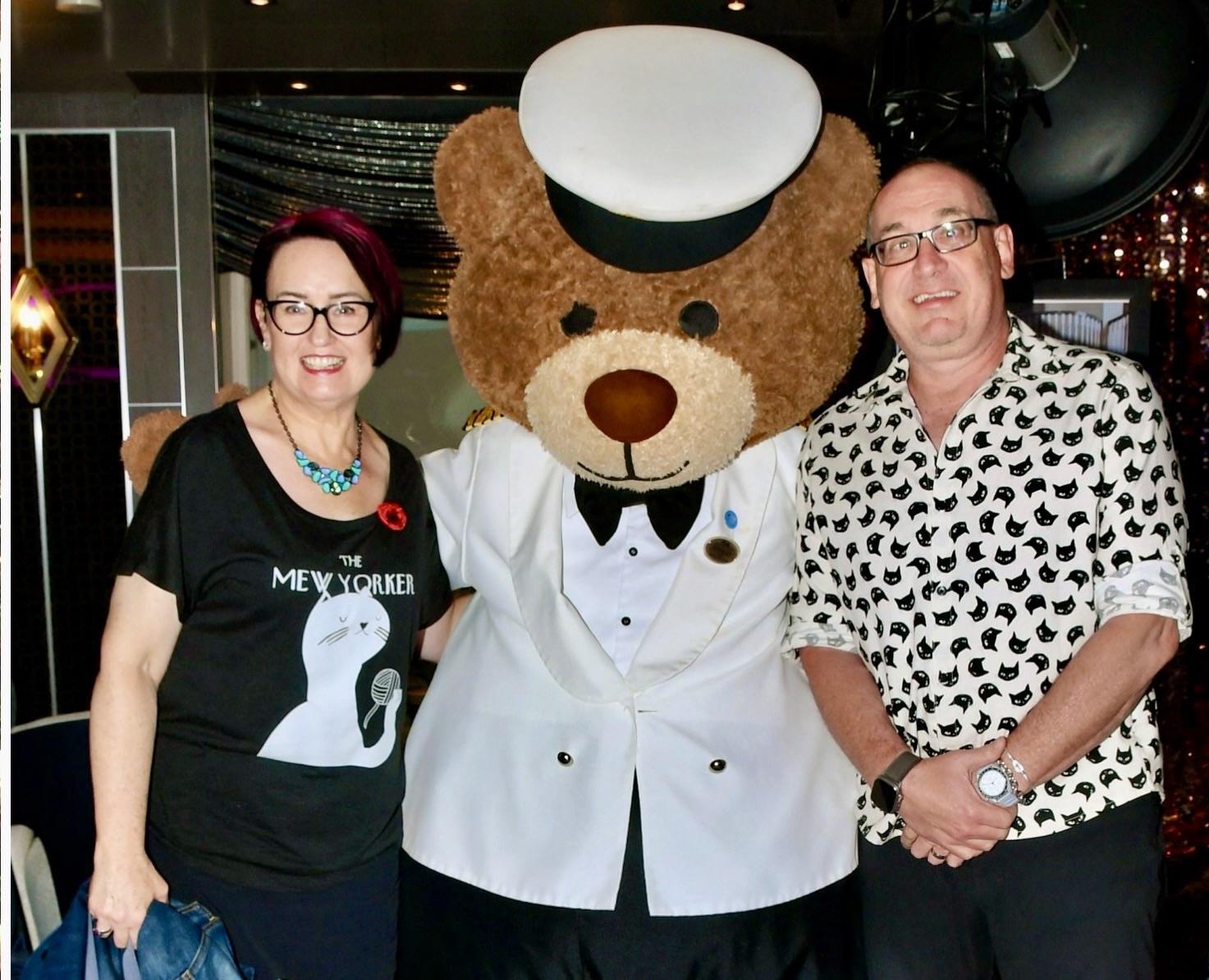 Before heading to dinner we bumped into Stanley the princess cruises mascot. He is a large bear and we had a our photo taken. We also had more photos taken and went to the Photo gallery area to look at them and get some printed for later on our package allow us some free prints