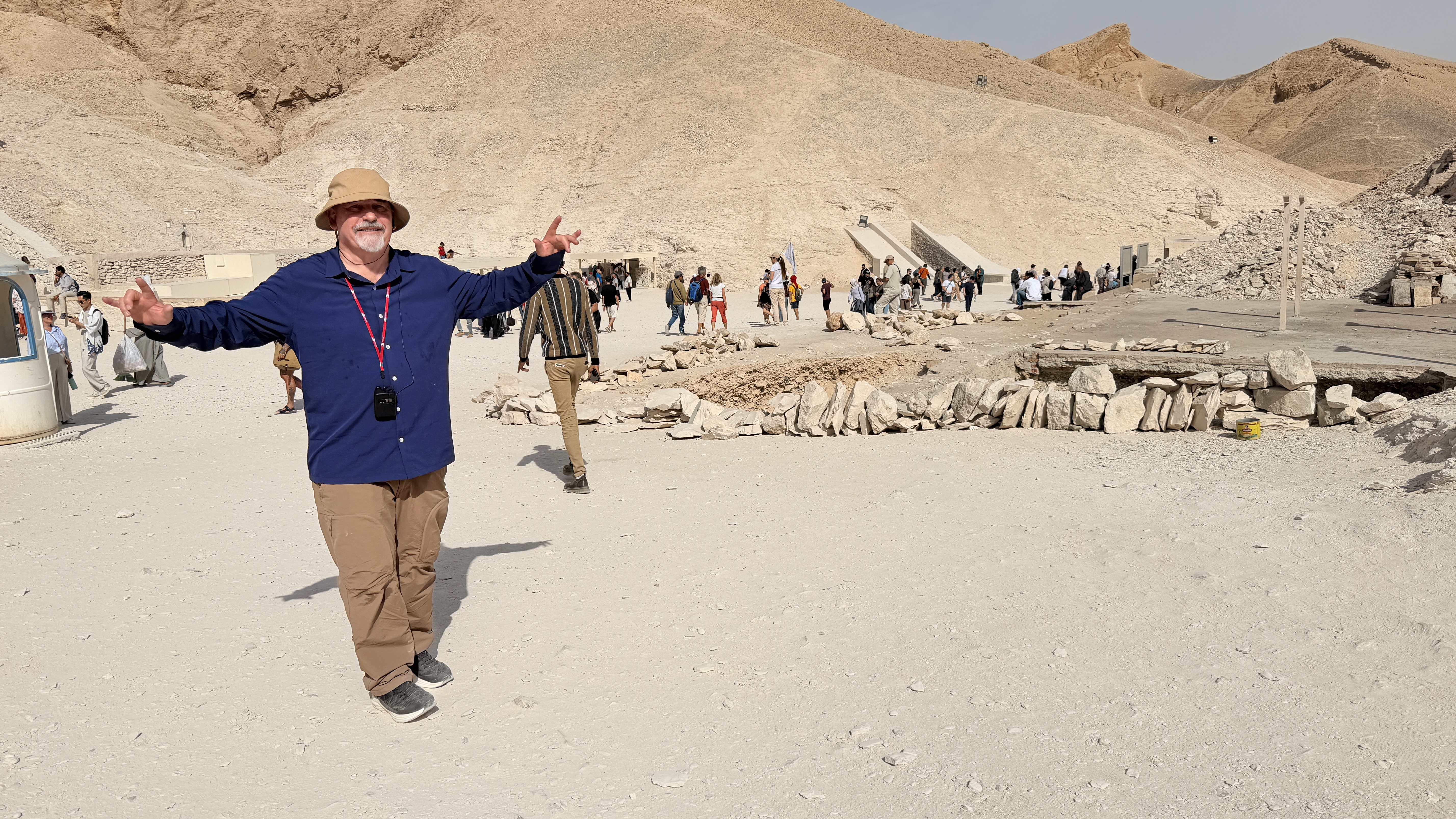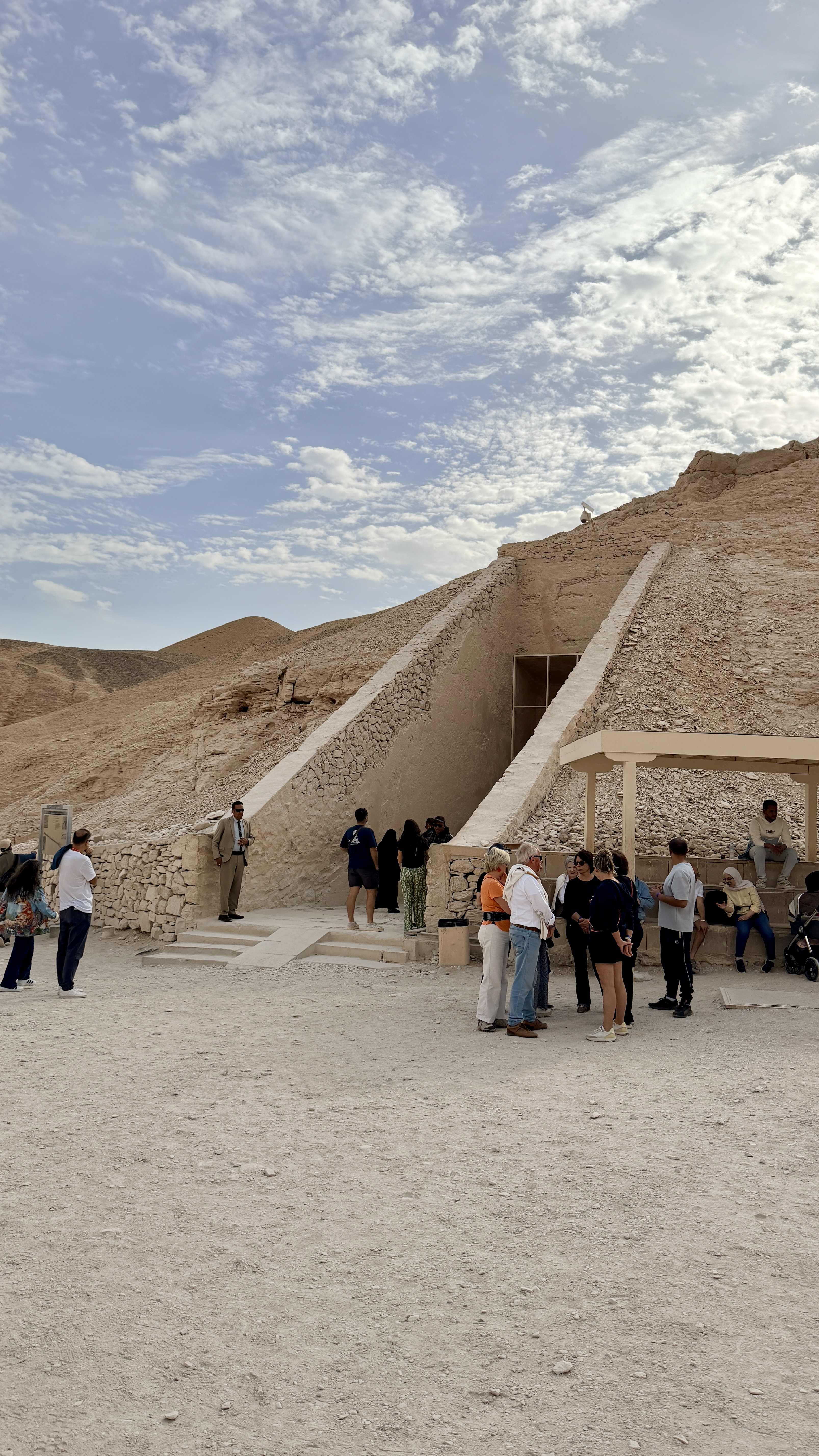 After security, we boarded electric shuttle carts, oversized golf buggies carrying 14–20 people, and were whisked a few hundred metres into the heart of the valley. There, Ibrahim gave us final instructions.