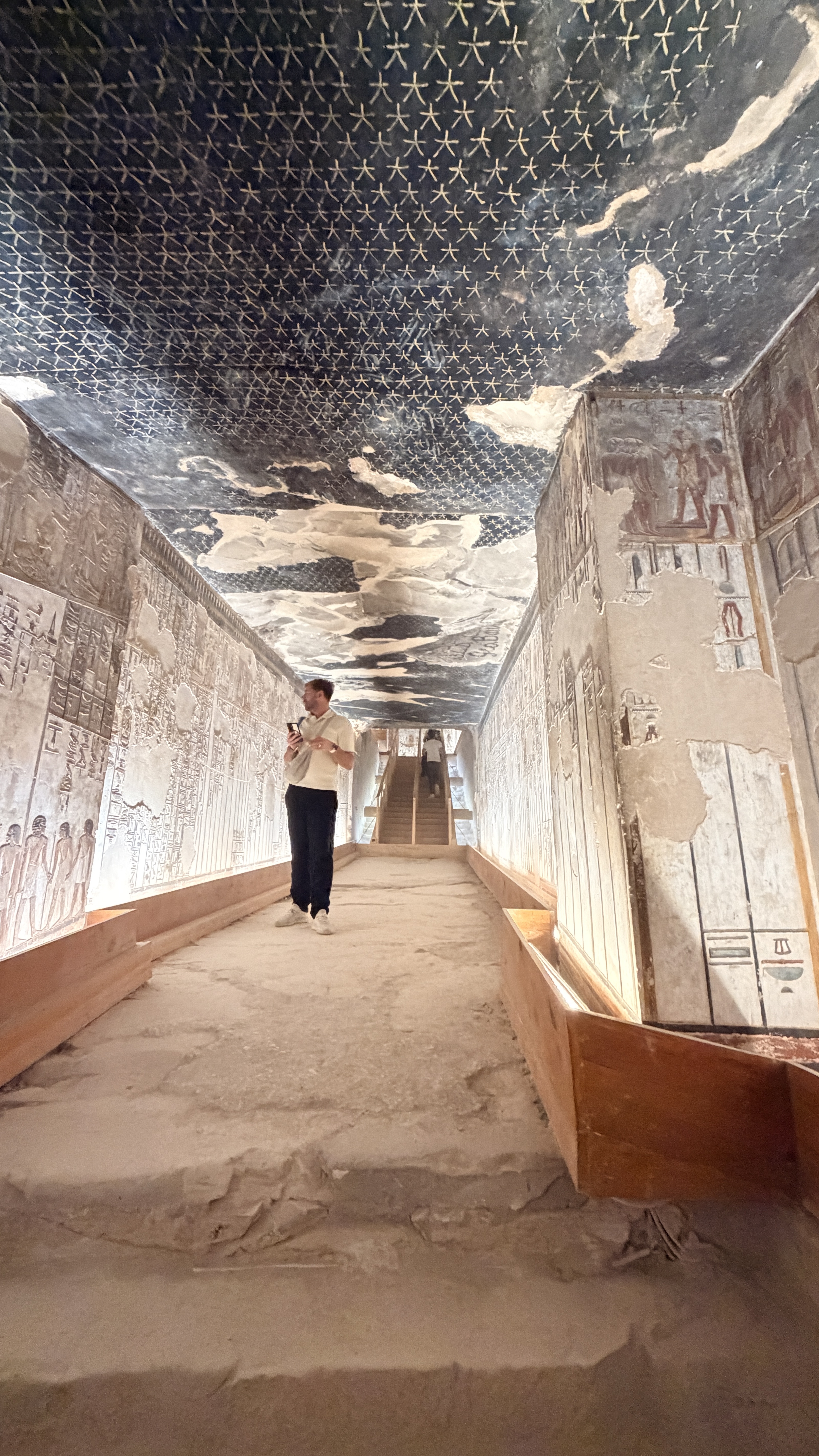 Our first descent was into the tomb of Ramesses IV, a 20th Dynasty pharaoh. Modern steps lead you down into the entrance, then wooden walkways take over. The descent is relatively short, but immediately overwhelming.