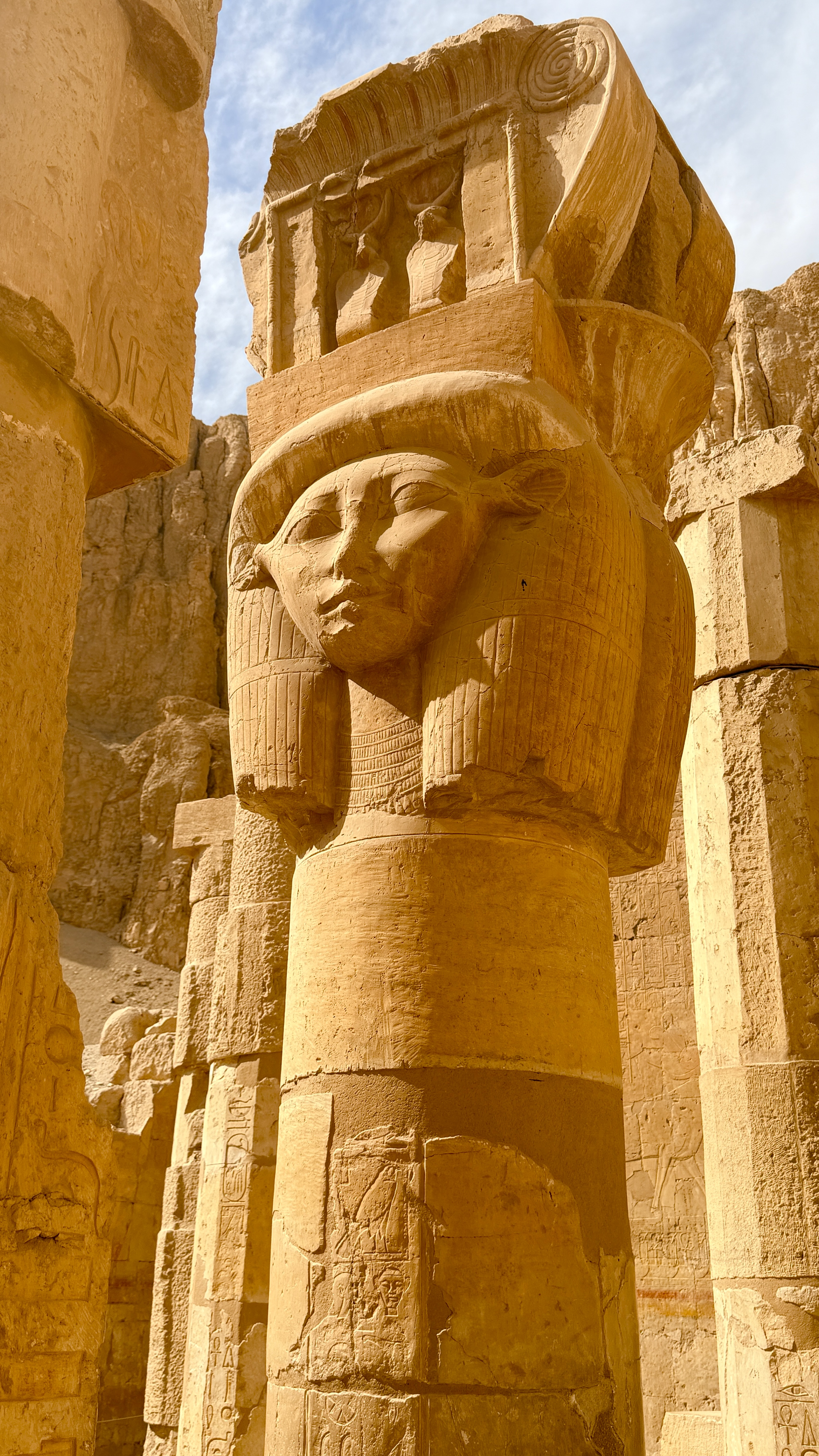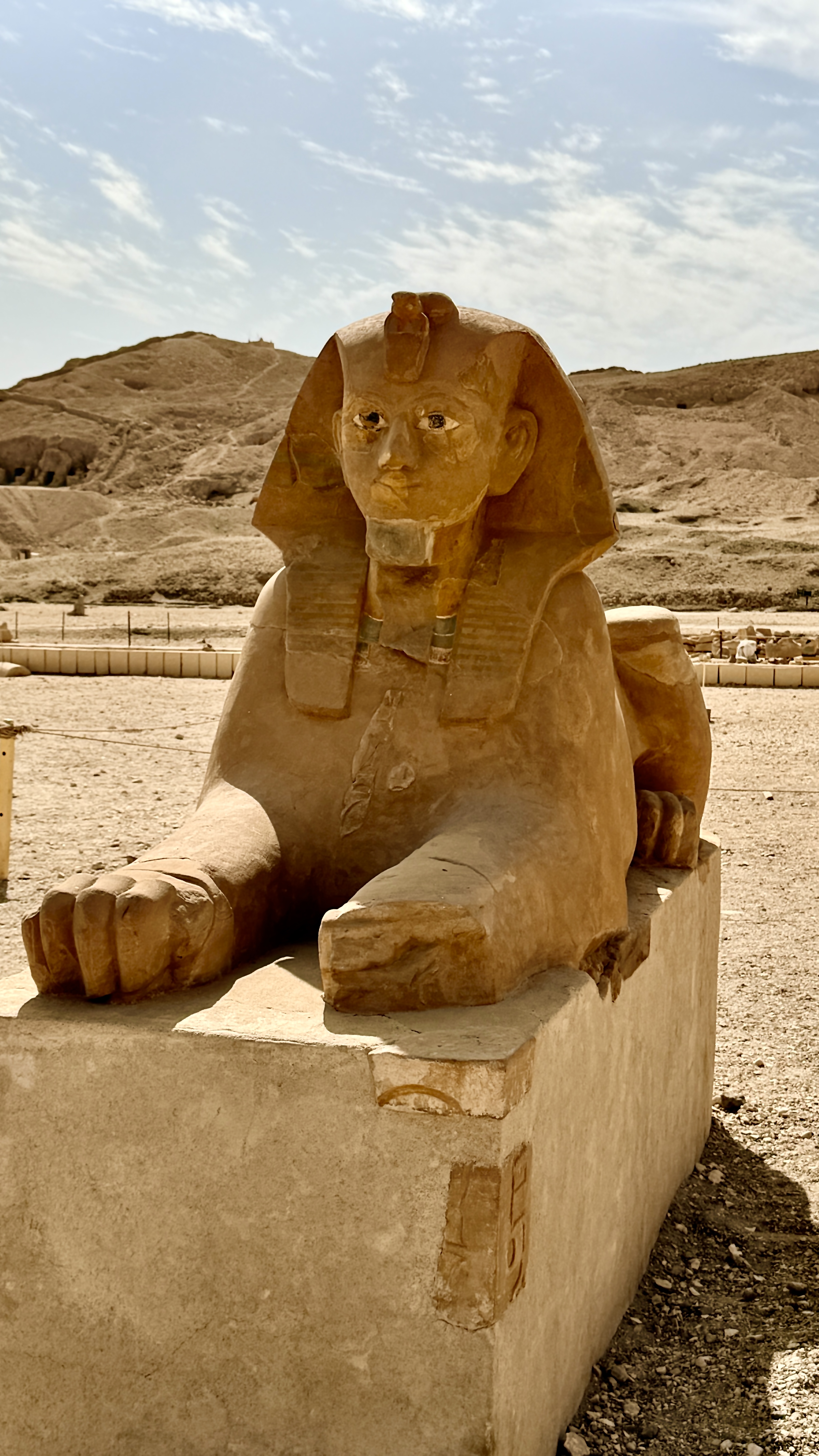 We visited the mortuary temple of Hatshepsut, one of the most extraordinary rulers in Egyptian history and the only woman to rule Egypt as a pharaoh in her own right. Even 3,000 years ago, the patriarchy was firmly entrenched, and Hatshepsut navigated it by presenting herself as male in statues and reliefs.