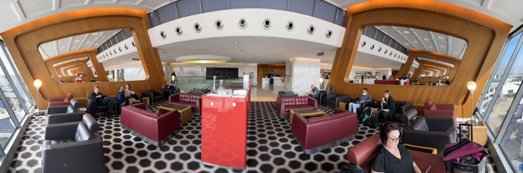 The next morning we’re up at 5am and head across to the airport just after 6am. To our surprise the airport is almost empty and we check our bags and proceed through security and passport control and are sitting in the Qantas first lounge by 6:30am. Our Flight is due to board at 9am.