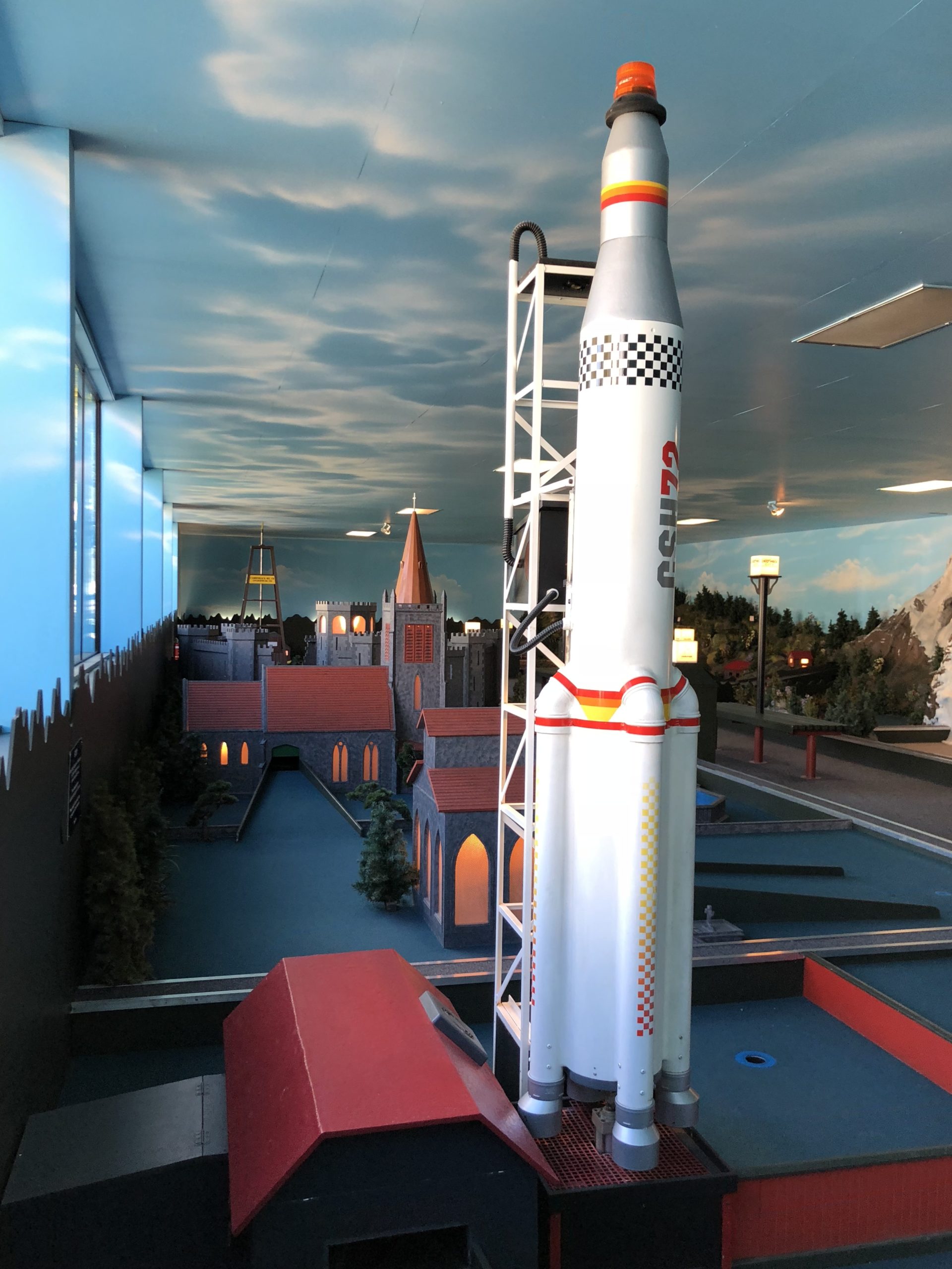 The min golf was also spectacular and lots of fun. no that isn’t a real rocket, it is a hole on the 18 hole indoor mini golf course we played. The courses is full of interesting holes, which ave a variety of challenges, moving parts, lights, sounds and themes.